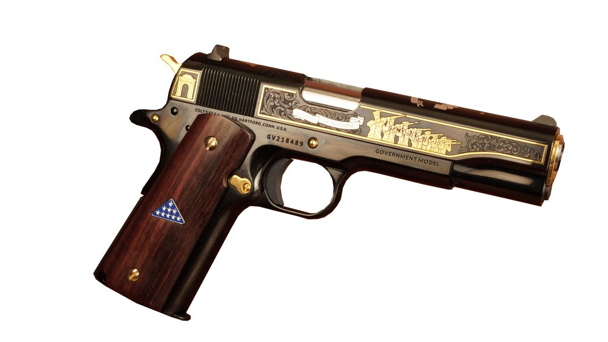 Colt, MFG# O1911C-TOG, UPC: 098289113306, UOM: Each, 1911 Classic Goverment, Old Guard, .45 ACP, 5″ Barrel, HIgh Polished, Rosewood Grips, 7-rd, IVS Exclusive, COLT, COLTHG10, COLTHGALL, HG10, HGALL
