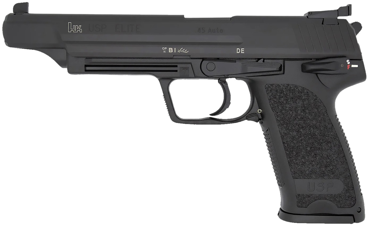 The USP Elite offers significant additional features making it a unique handgun designed for specialized applications. It combines elements of the USP Tactical, USP Expert, and Mark 23 with a long slide design. The result is a highly accurate pistol ideally suited to IPSC (International Practical Shooting Competition) and other practical target shooting applications. In addition to its longer slide the longest found on any HK pistol the USP Elite has the same adjustable target sights, ambidextrous control levers (with safe, fire and decock functions) and an O-ring barrel found on other specialized models of the USP.