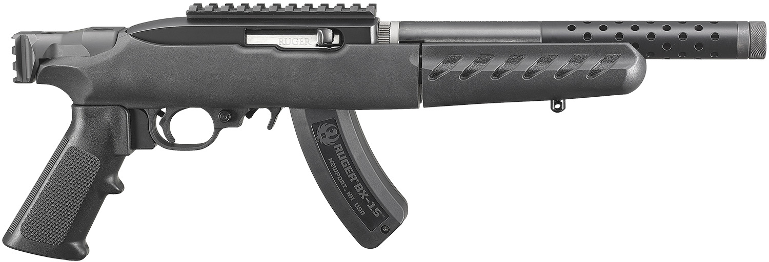 The Ruger 22 Charger Lite pistol features a cold hammer-forged, ported, threaded barrel with 1/2″-28 thread pattern. It features a standard ergonomic pistol grip that can be easily replaced with any AR-style grip; Picatinny rail brace mount with integrated QD cup; takedown-style stock which quickly and easily breaks down into two sections for convenient storage and transport. Includes an adjustable bipod and BX-15 magazine. Compatible with the Silent-SR sound suppressor.